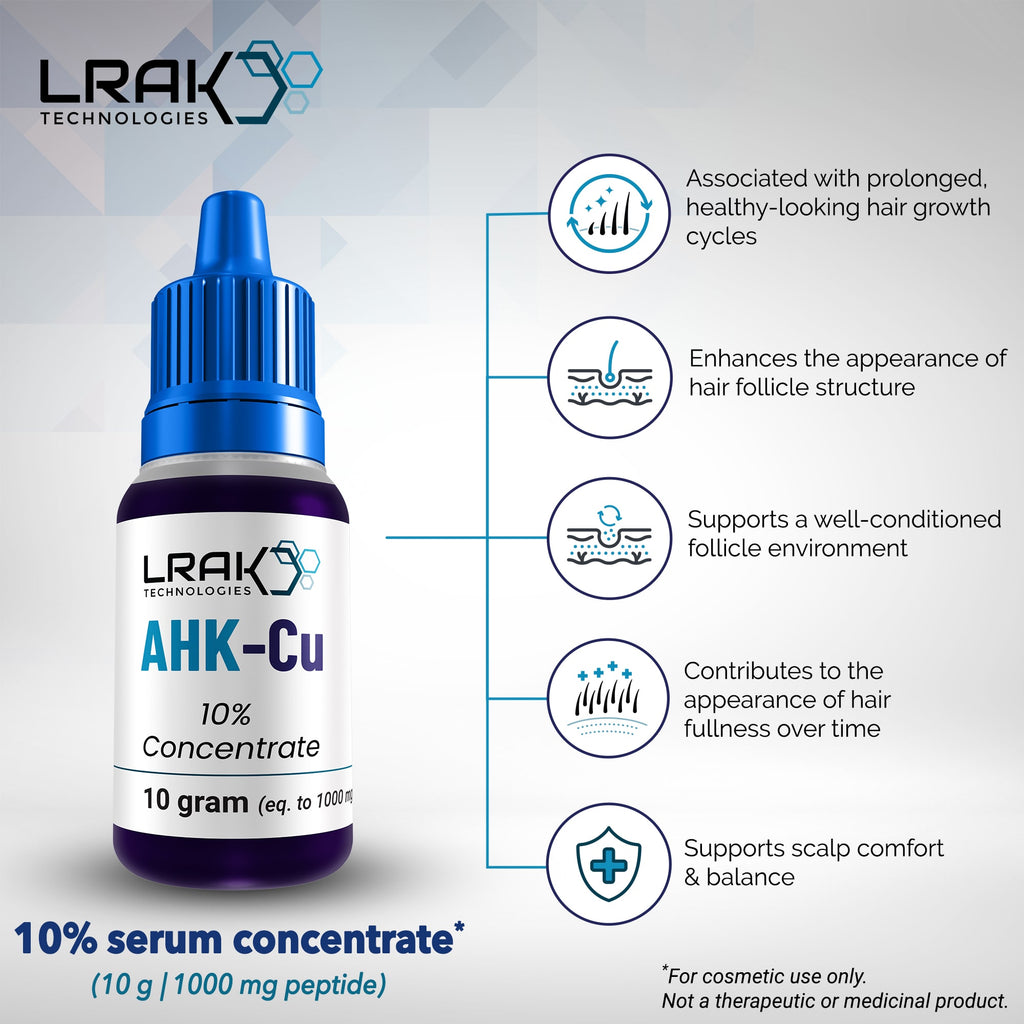 AHK-Cu 10% Concentrate makes it simple to fortify your existing routine. Developed with a clear focus on hair-follicle biology, AHK-Cu is a non-hormonal adjunct designed to support a healthier growth environment and complement proven actives like minoxidil.